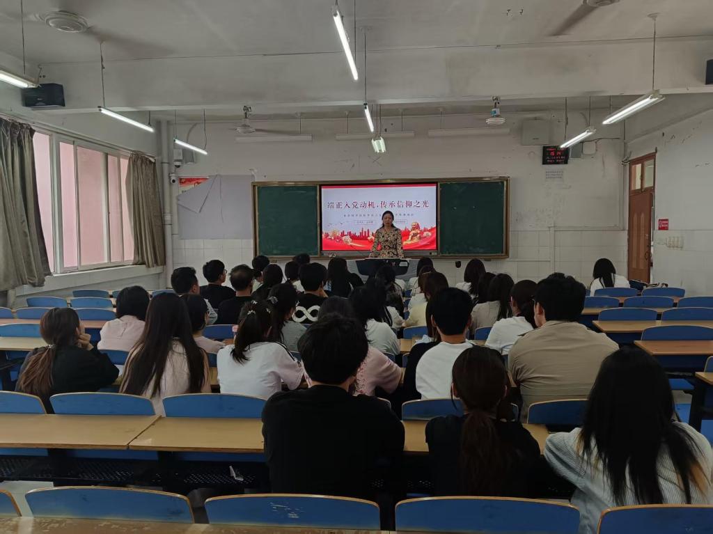 为进一步坚定入党积极分子的理想信念,提高入党积极分子思想觉悟,增强入党积极分子学习能力,发挥入党积极分子先锋模范作用。yl7703永利(食品工程系)于5月9日举行第五十六期入党积极分子培训会,食品工程系党总支负责人王新娜以“端正入党动机,传承信仰之光”为题为全体入党积极分子讲授专题党课。