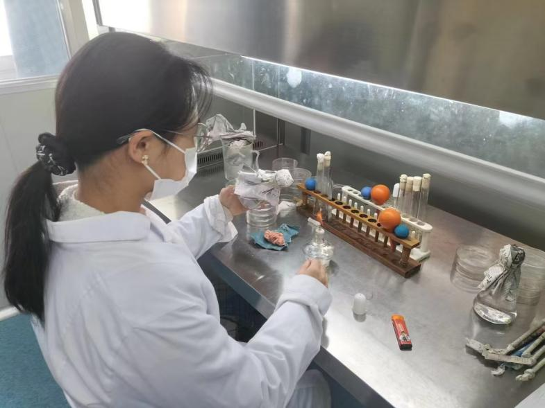 图1.食品检验检测技术专业员工开展微生物检测实验
