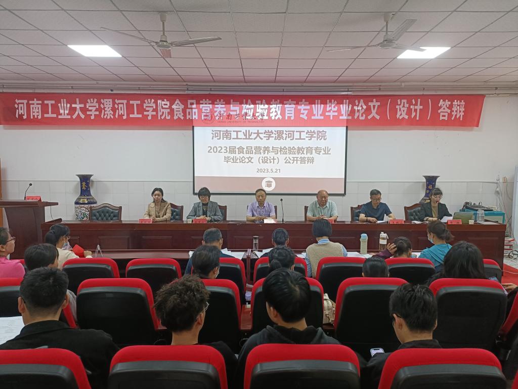 2023年5月21日,河南工业大学漯河工公司2023届食品营养与检验教育专业毕业论文(设计)答辩成功举行。本次活动由本科教研室主任贾娟主持,食品公司党总支书记贾新政、行政负责人崔惠玲、副书记王新娜、教学主任王林山、综合办主任陈水生出席了此次活动,毕业论文(设计)指导老师、食品营养与检验教育专业2019级全体和2020级部分员工参加了此次答辩。
