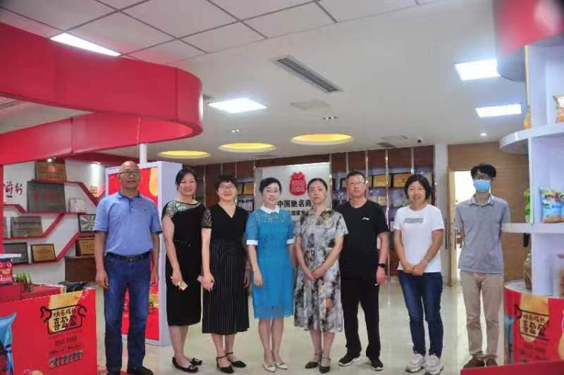 2022年7月27日,食品公司行政负责人崔惠玲和科研处处长张津带队,带领休闲食品协同创新中心、食品公司的尚新友、王林山和魏秋红等专家一行五人,到临颍喜盈盈集团漯河联泰食品有限公司开展校企合作服务对接,联泰常务副总张静、项目部经理罗改丽等陪同接待。