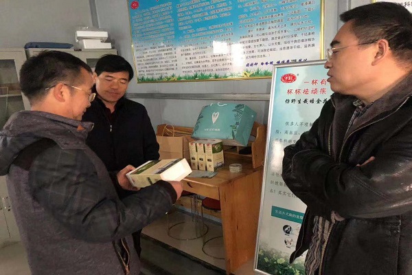 在美澧公司大刘镇的生态种植基地,王新华带领大家查看了金花葵植株,并详细介绍了金花葵的生长、种植特性,以及金花葵各部分的药用、食用价值,并品尝了其产品金花冷和汤。