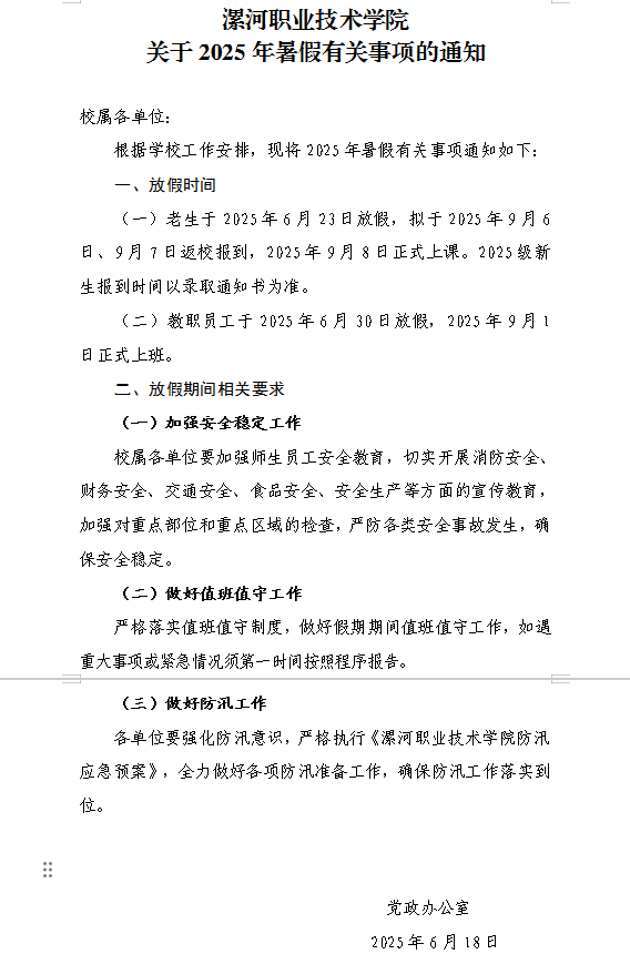 yl7703永利关于2025年暑假有关事项的通知